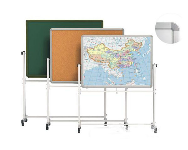 1、板体采用黑绿和白色板面,双面、一板两用,银灰色和青铜亚光色两种边框,可同时采用粉笔和白板笔书写。